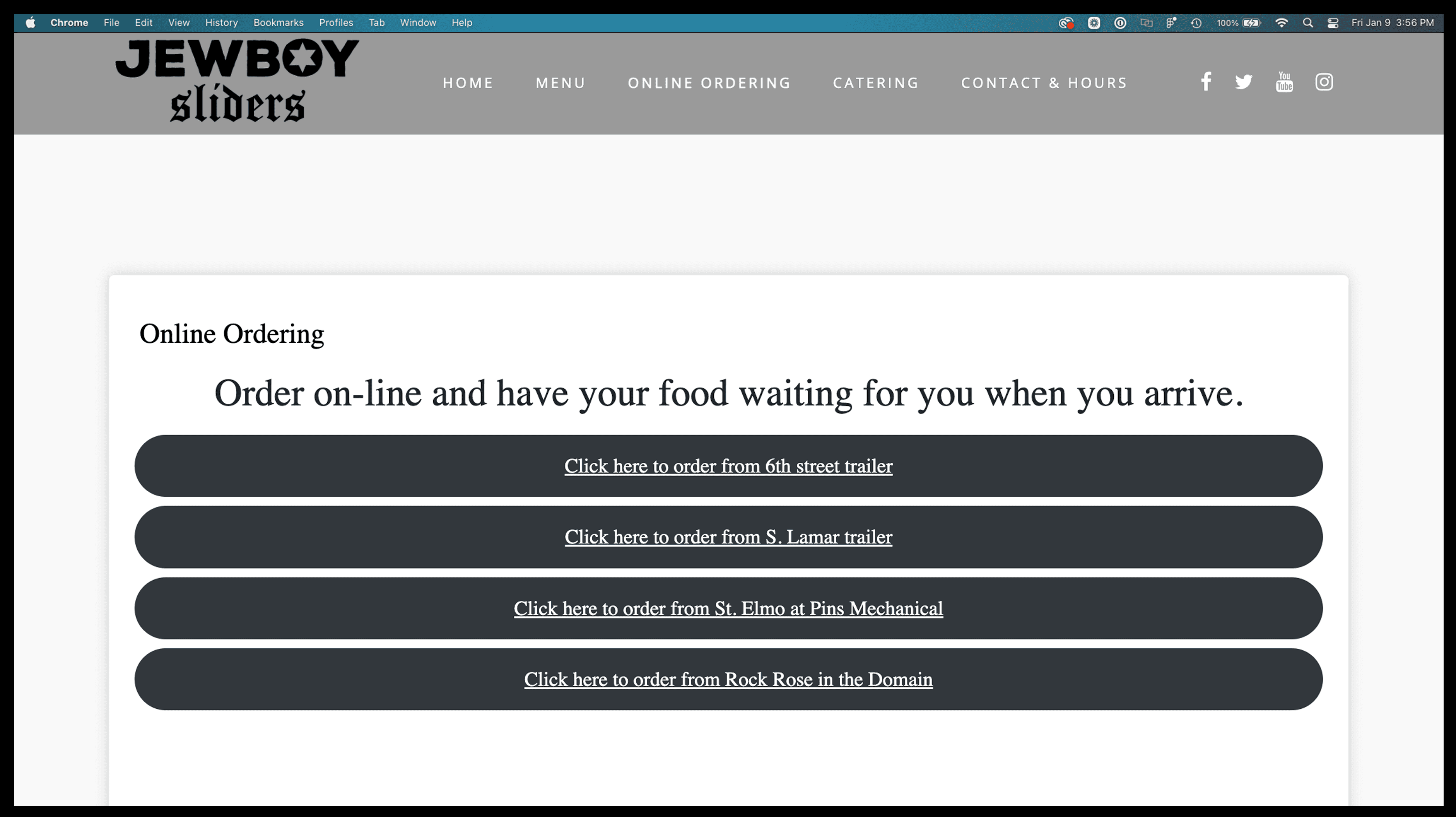Fast forward a bit, and Mo launched a new concept called JewBoy Sliders, quickly expanding to multiple food trucks around Austin. As the brand grew, the website stayed…pretty basic. It was built on a simple template that didn’t do much to help customers find locations, place orders, or understand the full scope of the business.